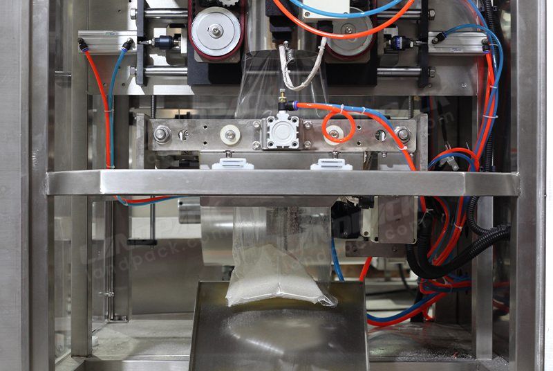 9. La máquina completa todo el procedimiento de llenado, embolsado, impresión de fecha, carga (agotamiento) automáticamente.