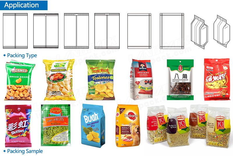 Suitable for automatic mixing and weighing packaging of various granular products, such as dried fruits, dried blueberries, pineapple dried fruits, apple dried fruits, mango dried fruits, freeze dried fruits packaging, pimeapple dried fruits, banana and many others.