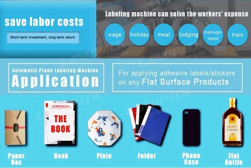 The labeling Machine is suitable for all kinds of objects with plane surface, such as plastic paper card pouch cards hang tag paper plastic film flat surface products, boxes, bottles, cans, etc.