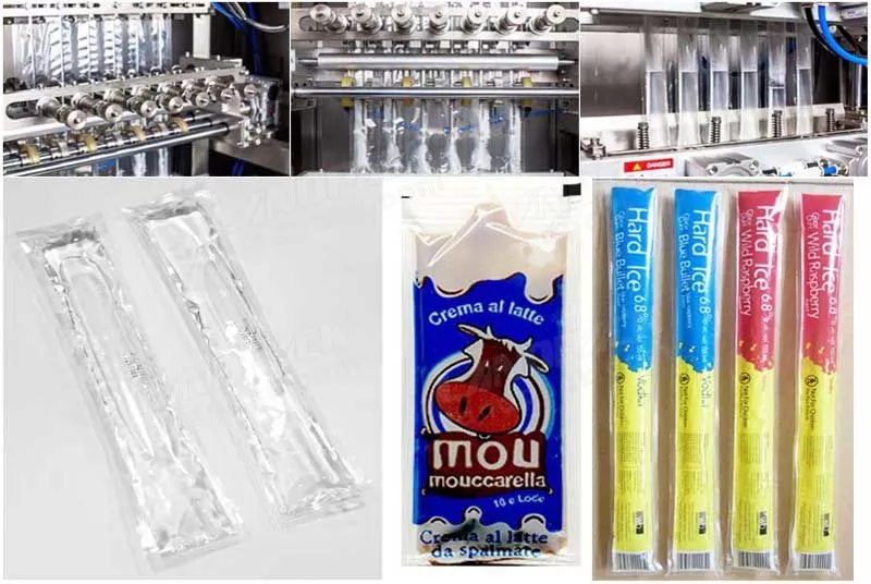 2. Función principal de la máquina: película dividida automática en la posición correcta, medición y llenado de líquidos, sellado de llenado de forma de bolsa de múltiples carriles, corte, seguimiento del sensor, capacidad de conteo.