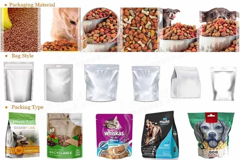 Suitable for small granule material,such as dog food, cat food, fish food, bird food, and other granular pet food pre-made bags.