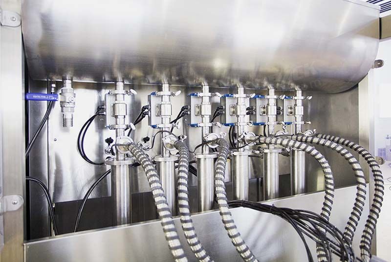 4. Esta línea de producción utiliza un sistema de transmisión de engranajes preciso y un motor de CC para permitir que la altura de la botella se ajuste a través de la función de los botones de elevación alta y baja al cambiar las botellas. Esta innovación hace que sea más fácil de usar.